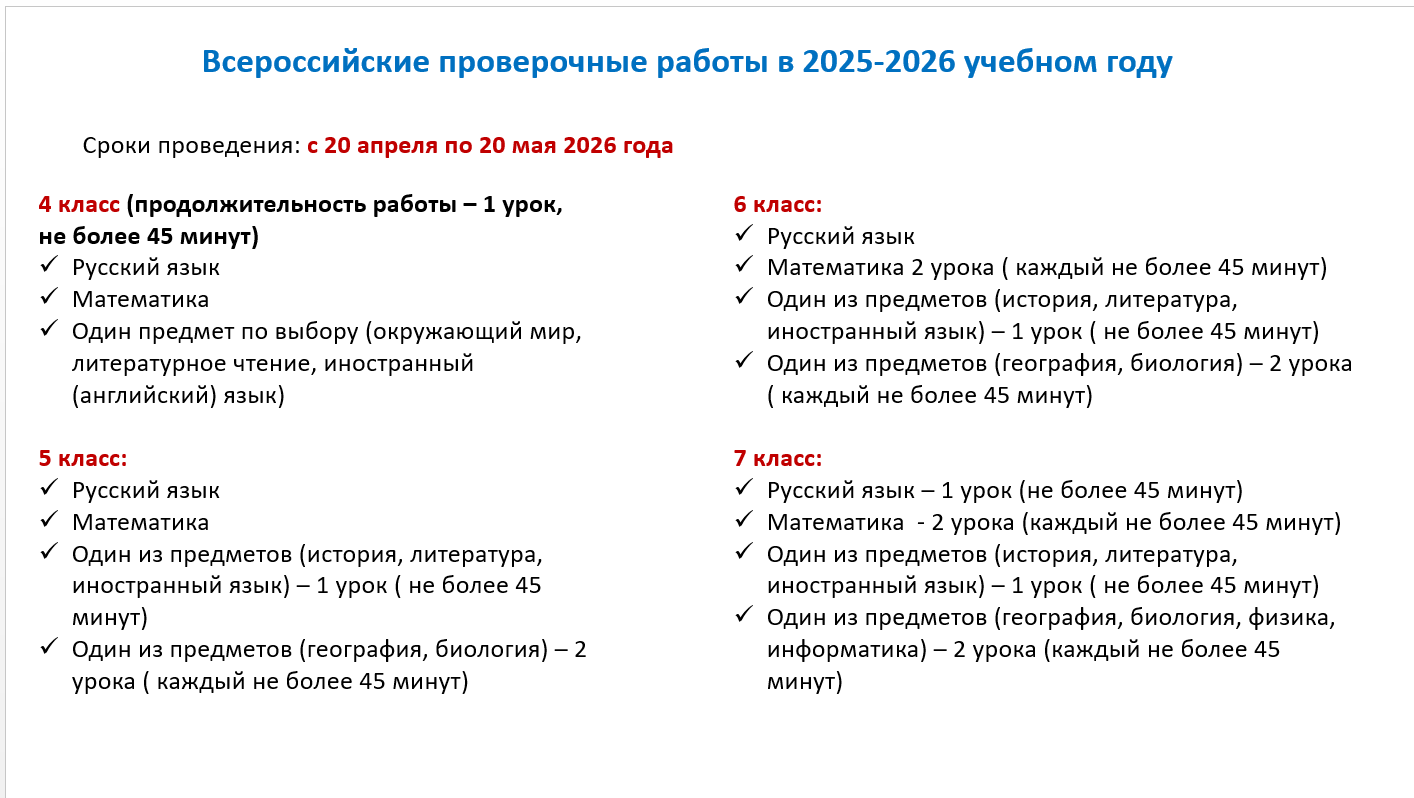 Всероссийские проверочные работы 2025-2026 учебного года